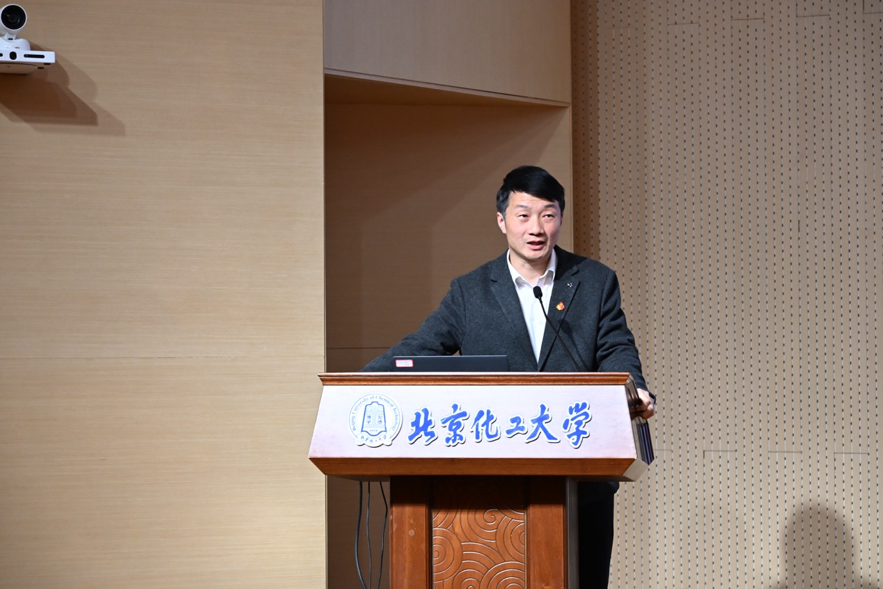 程道建院长以《抓好重点行政工作 服务学院高质量发展》为题,首先从学院整体规划、年度考核任务和近期重点工作三个方面介绍了学院2026年的重点工作及工作规划。他表示2025年在学院全体师生的齐心协力下,学院在人才培养和双创竞赛上硕果累累,不断提升优化管理服务水平,学院在国内外影响力持续提升。在未来的工作中,学院继续围绕拔尖创新人才培养、提升优势学科方向、高层次人才引育、智能化工方向培育四个方面来加强学科建设,为教育强国贡献北化力量。