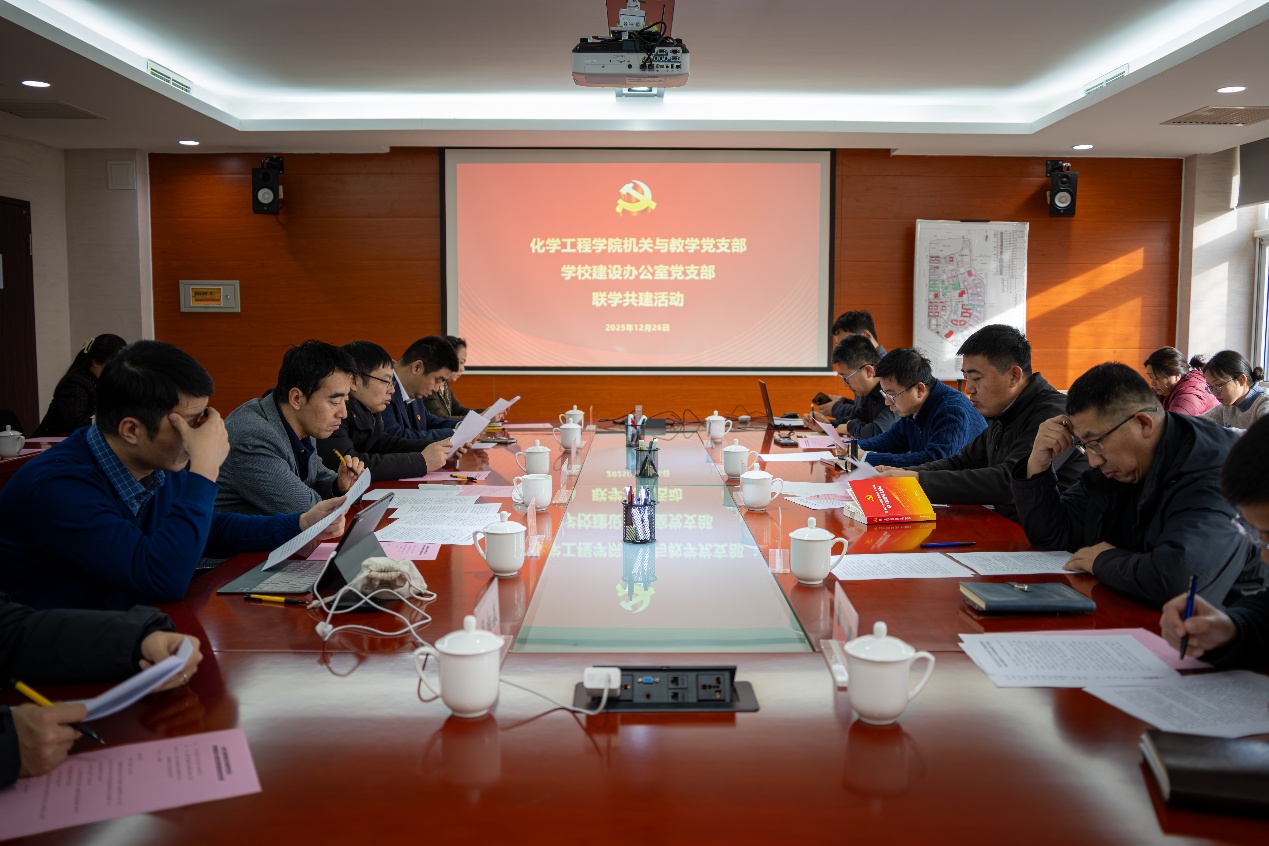 12月26日下午,化学工程学院机关与教学党支部与学校建设办公室党支部在学校建设指挥部106会议室开展联学共建活动,学校建...